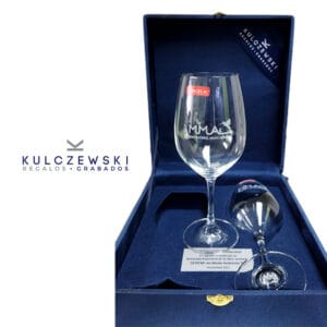 Creamos cajas de lujo con copas y vasos grabados. Distintas alternativas, copas de vino, champagne, vasos whiskeros, todos de cristal. Si no quieres tanta formalidad también puedes llevarlos en forma unitaria con un envase simple y elegante. Un perfecto regalo de matrimonio, aniversario o cumpleaños, destaca con un regalo que nadie olvidará.