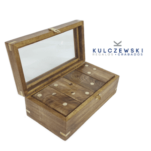 Juego Dominó Madera piezas grandes detalles en Bronce