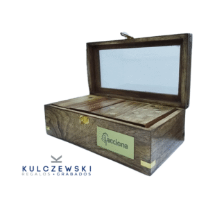 Clásico y contemporáneo en perfecta armonía: este juego de dominó destaca por sus piezas grandes de madera, que ofrecen una experiencia táctil y visual única. Cada ficha está realzada con detalles en bronce, aportando un toque de elegancia atemporal. Perfecto para quienes valoran el diseño y la calidad en los pequeños grandes momentos. Ideal para convertirlo en un regalo con significado gracias a su placa grabada.